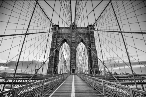 For example, not only is this black and white mural of the Brooklyn Bridge beautiful, but it also does not limit your decor. It blends perfectly with the more neutral colours of the industrial style and also gives you the option of including some more colourful accents.