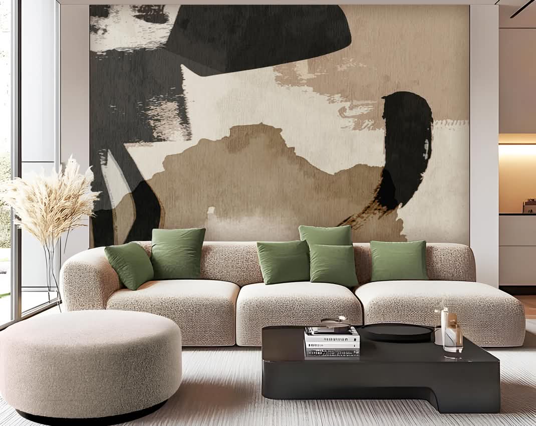 Oeuvre abstraite, brun, taupe et beige.
