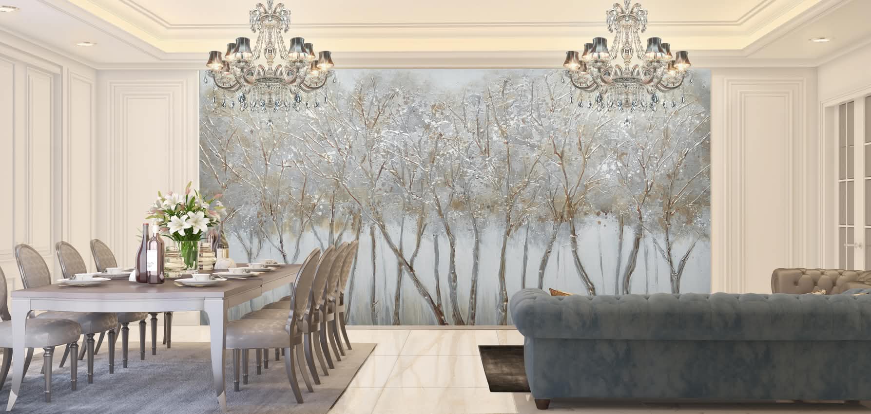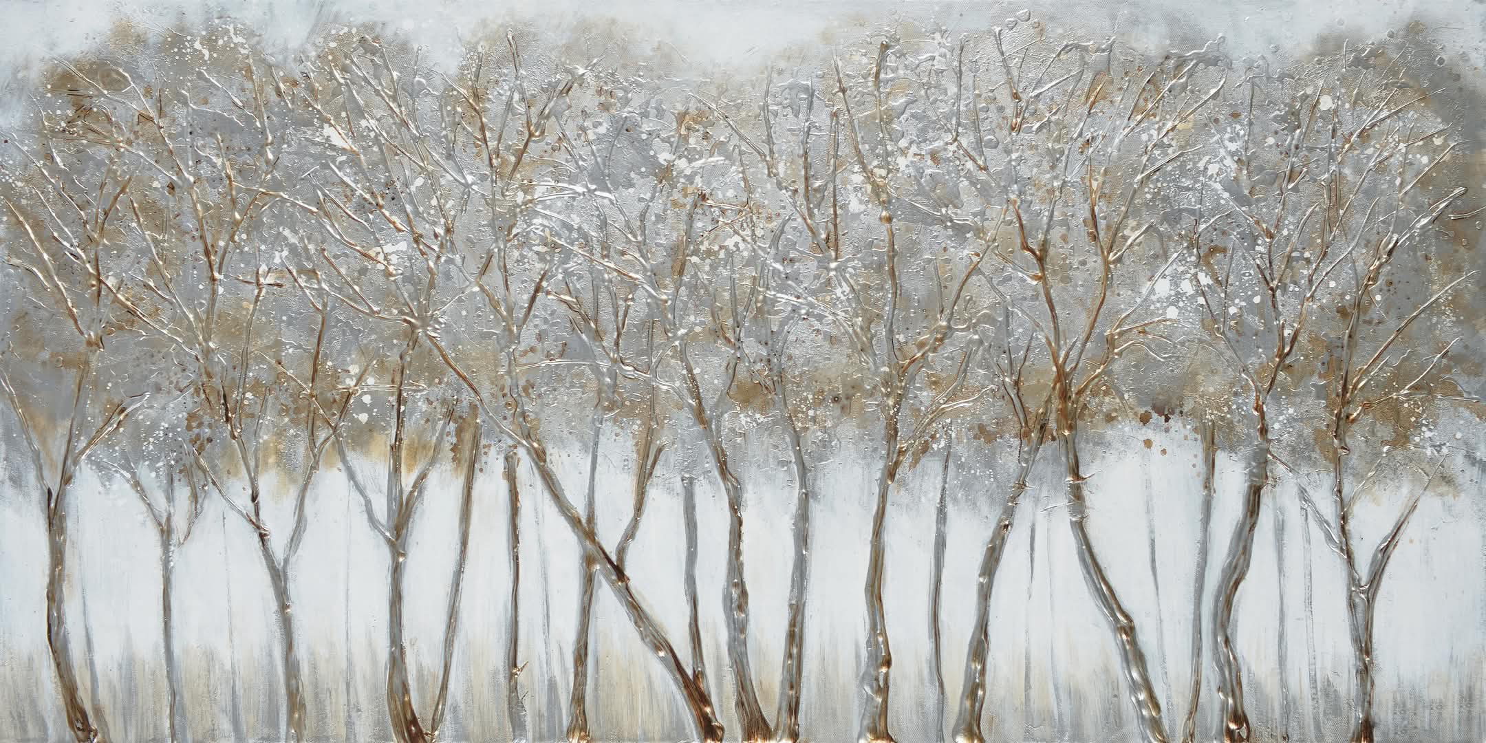 Peinture éclectique d’une forêt argentée, un heureux mélange de froideur et de chaleur.