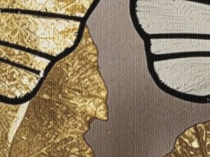 Art mural, une touche moderne à l’art asiatique, feuilles de Ginkgo modernes sur fond marron doré.