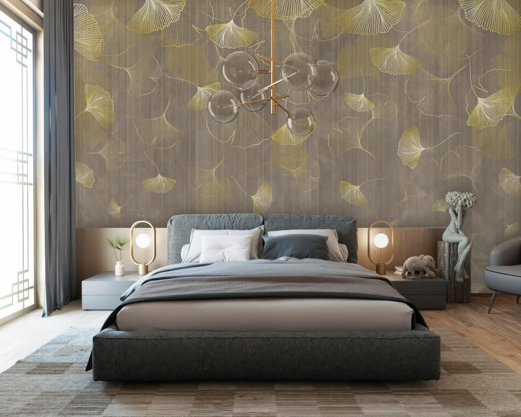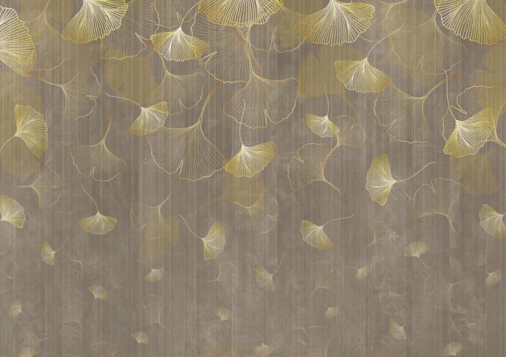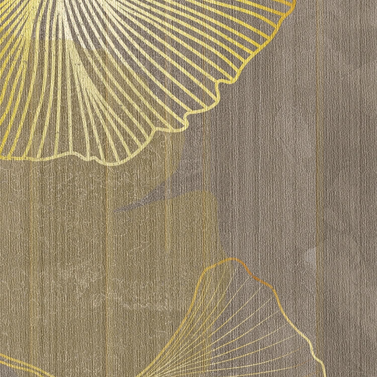 Élégantes et douces feuilles dorées sur fond texturé marron.