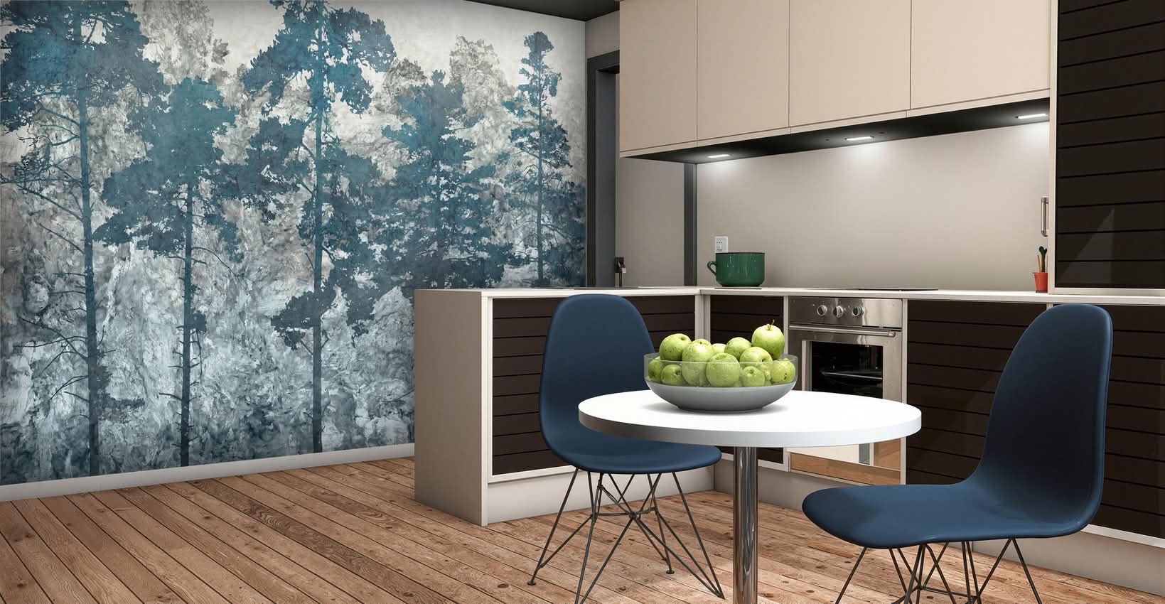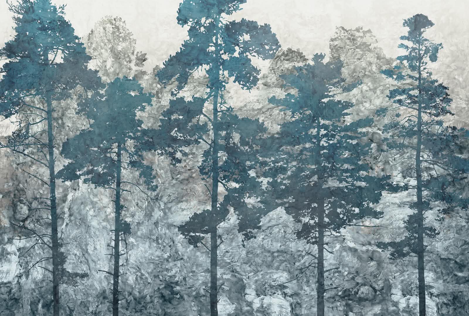 Pour une harmonie parfaitement artistique, cette peinture à l’huile représentant une forêt de pins bleus crée une atmosphère calme et sereine.