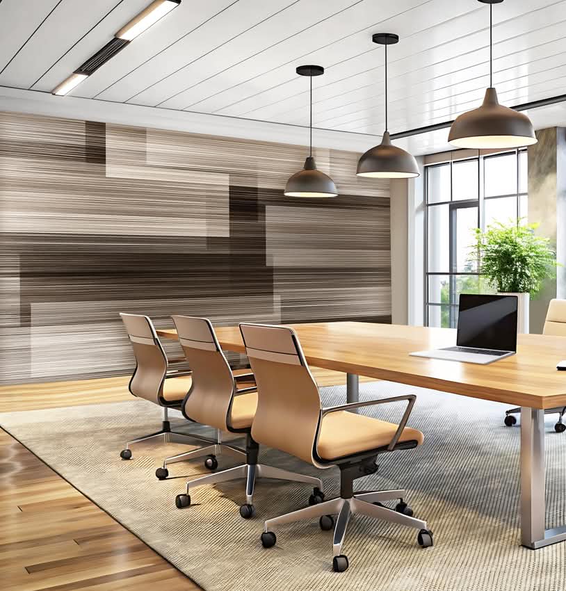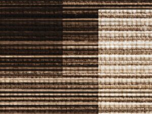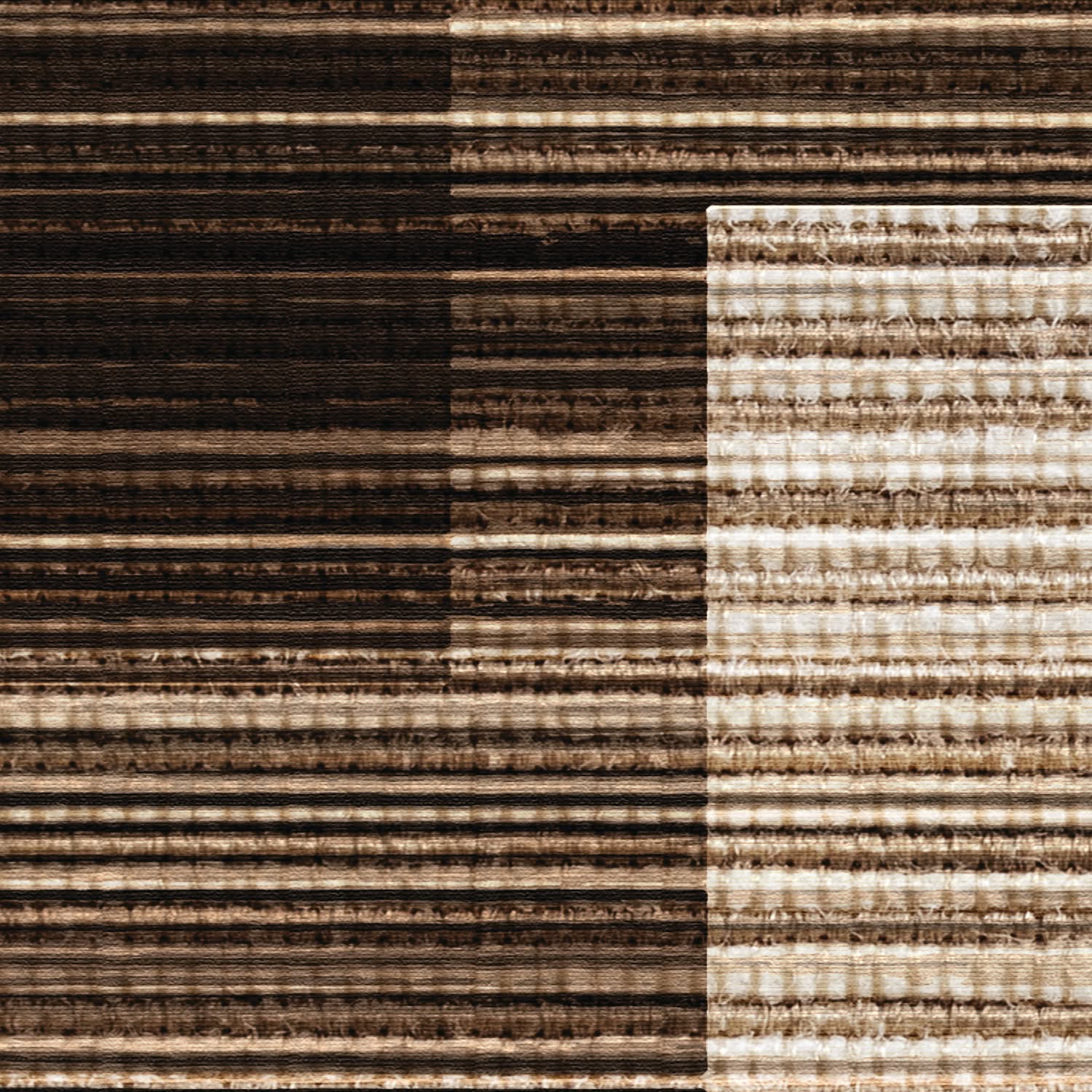 Art géométrique abstrait moderne dans des tons chauds et terreux sur une texture imprimée raphia.