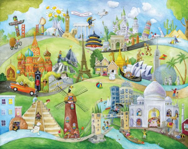 -A children’s mural of the wonders of the world.