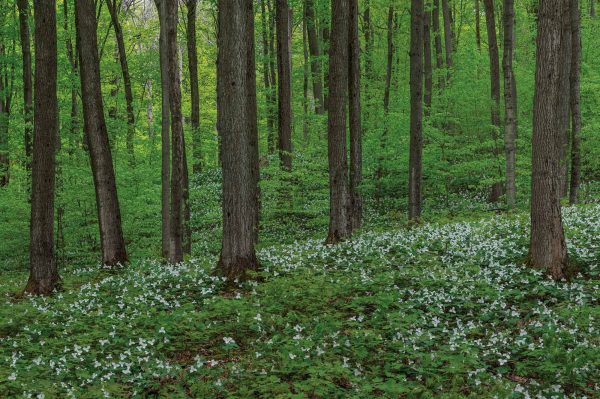 -forest with flowers mural, forest with flowers wall mural, Trillium season forest wall mural, Trillium season forest wallpaper mural