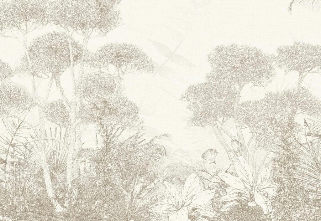 This matte gold tropical pattern on an off-white background is a modern take on classic beauty.