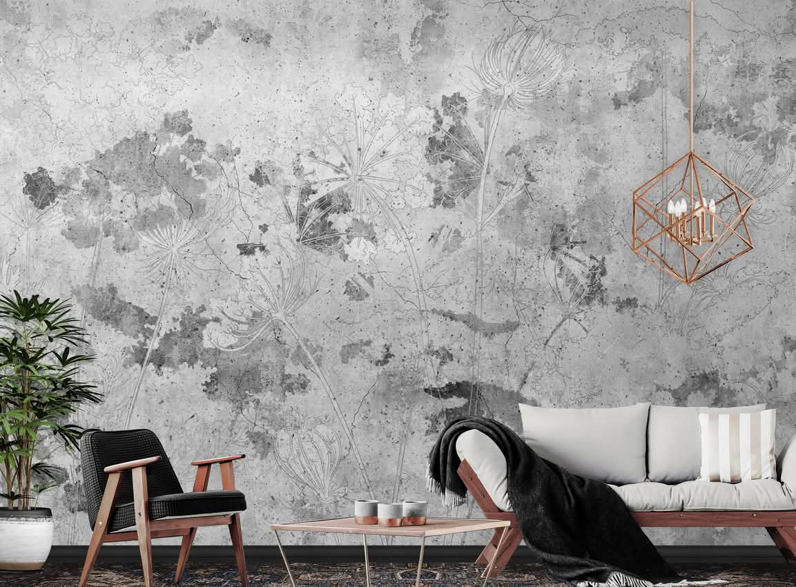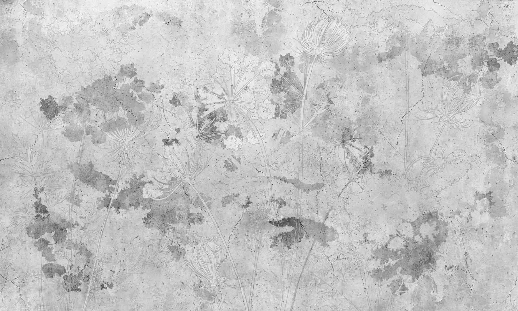 When wild beauty and concrete become one in monochrome, wildflowers painted on a concrete wall.