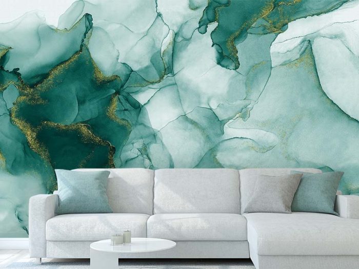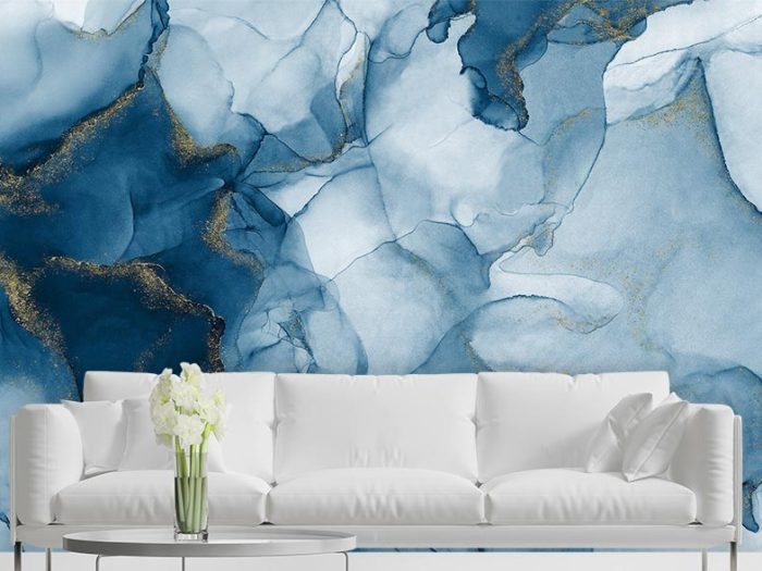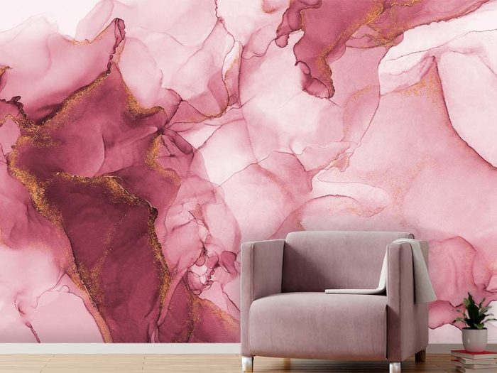 -Wallpaper mural of a marble in shades of grey with a touch of gold. An original and elegant design, perfect for creating a chic and trendy accent wall. A good idea for a kitchen wall, a dining room wall, a living room wall, a bedroom or bathroom wall.